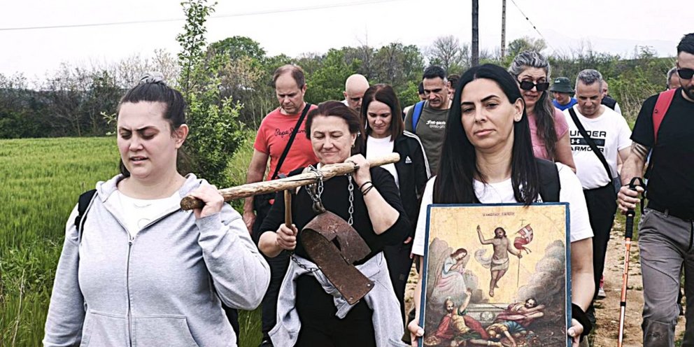 Σε αυτή τη μακρά διαδρομή, οι πιστοί κάθε ηλικίας διέσχισαν αγροτικούς δρόμους, ανθισμένα μονοπάτια και καταπράσινες πλαγιές βουνών, υμνώντας το μεγαλείο της φύσης και δοξάζοντας τον Αναστάντα Χριστό. Την πομπή συνοδεύουν πάντα αναβάτες με τα άλογά τους και όλοι μαζί φτάνουν μέχρι το τελευταίο άκρο των γεωγραφικών ορίων του χωριού, προκειμένου να επισκεφθούν όλα τα εξωκλήσια.