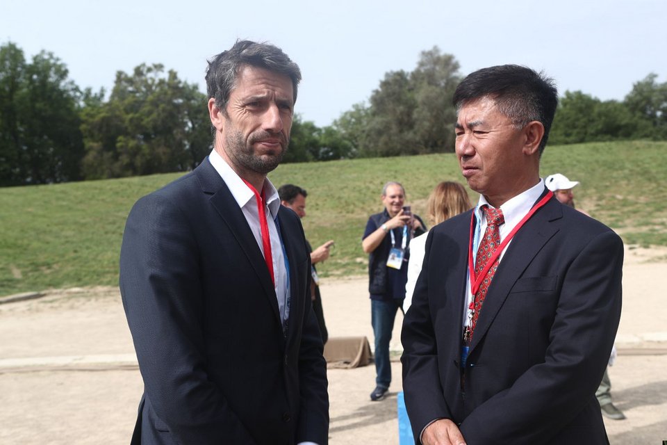 Στη συνέχεια, η Φλόγα θα παραδοθεί στους Γάλλους διοργανωτές στις 26 Απριλίου στο Παναθηναϊκό Στάδιο της Αθήνας, τον χώρο όπου διεξήχθησαν οι πρώτοι Ολυμπιακοί Αγώνες της σύγχρονης εποχής, το 1896.