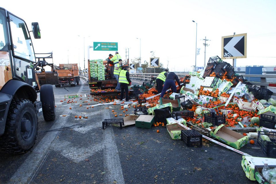 Μεγάλες καθυστερήσεις, πορτοκάλια διασκορπισμένα στην άσφαλτο
