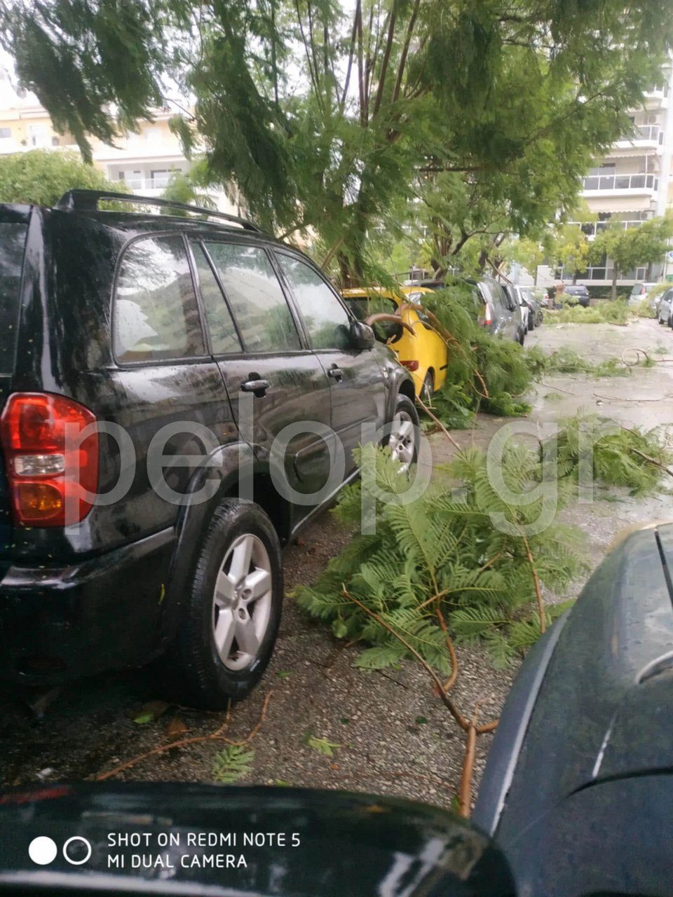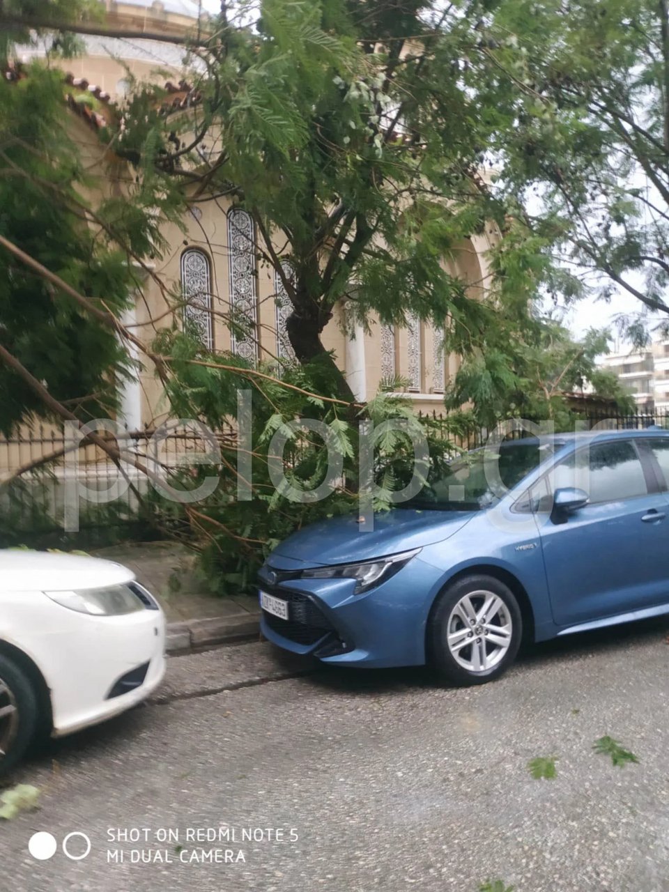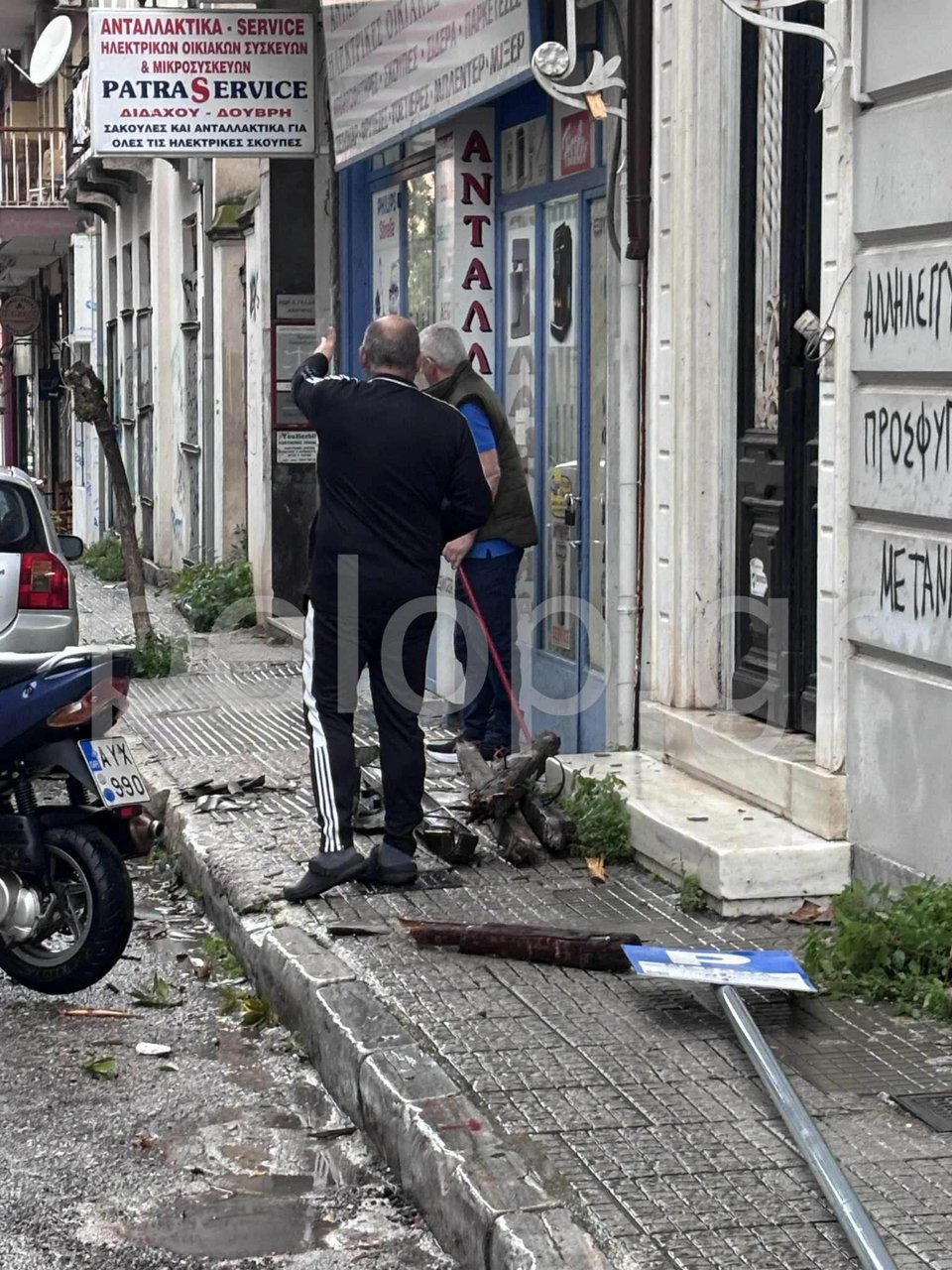 Στην οδό Γούναρη και Κορίνθου έσπασαν τζαμαρίες, ενώ πίσω από τον Ιερό Ναό του Αγίου Ανδρέα έσπασαν κλαδιά δένδρων και έπεσαν σε αυτοκίνητα.