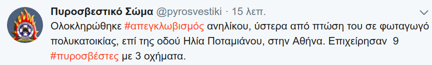 Ζωντανό απεγκλωβίστηκε ανήλικο παιδάκι που έπεσε από τον φωταγωγό σε υπόγειο πολυκατοικίας στα Ιλίσια.