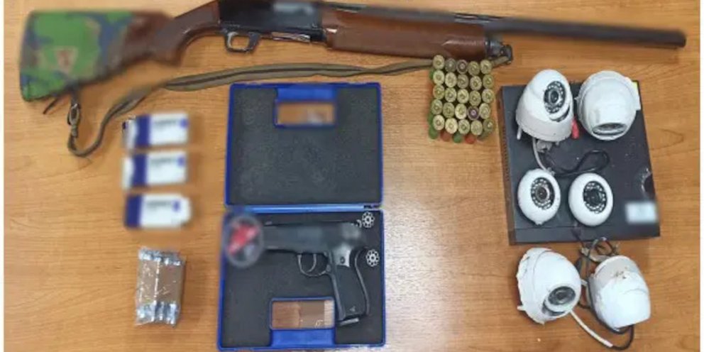 Ο κατηγορούμενος κατελήφθη μέσα στο σπίτι του, να κατέχει ναρκωτικά δισκία φαρμακευτικού σκευάσματος, καθώς και όπλα και πυρομαχικά, ενώ διαπιστώθηκε ότι είχε εγκαταστήσει έξω από το σπίτι του 6 κάμερες κλειστού κυκλώματος.