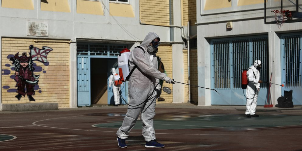 Σχετικά με τις απολυμάνσεις, ο κ. Σπυρόπουλος λέει: «Οι καθιερωμένες απολυμάνσεις για έντομα και τα σχετικά, γίνονται όπως προβλέπεται, αλλά απολυμάνσεις για τον κορονοϊό δεν συντρέχει λόγος να κάνουμε σε αυτή τη φάση. Άλλωστε δεν είχαμε κάποιο κρούσμα σε δικό μας σχολείο και είχαν γίνει απολυμάνσεις τότε που έκλεισαν τα σχολεία. Έκτοτε παρέμειναν κλειστά, οπότε δεν έχει νόημα να κάνουμε τώρα. Θα προχωρήσουμε όμως σε εβδομαδιαία βάση και σύμφωνα με τις οδηγίες του ΕΟΔΥ. Χρησιμοποιούμε το ενδεδειγμένο απολυμαντικό για τον κορονοϊό, το οποίο δεν είναι τοξικό. Απαιτείται να παραμείνει κλειστός για τέσσερις ώρες ο χώρος που απολυμάνθηκε και μετά ανοίγει και μπορεί να μπει ο οποιοσδήποτε».
