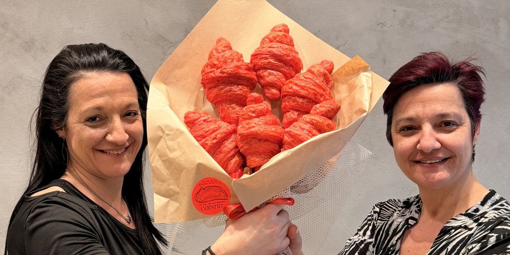 Δεν διατηρούν ανθοπωλείο αλλά φούρνο --και στις δικές τους ανθοδέσμες δεν πρωταγωνιστεί το τριαντάφυλλο, αλλά κατακόκκινα κρουασάν σε ένα βρώσιμο μπουκέτο. Για τους λάτρεις της συγκεκριμένης ζύμης, αυτή η «ανθοδέσμη» μυρίζει βούτυρο, δεν μπαίνει σε βάζο αλλά σε πιάτο ή στο χέρι -- και κατευθείαν στο… στομάχι.
