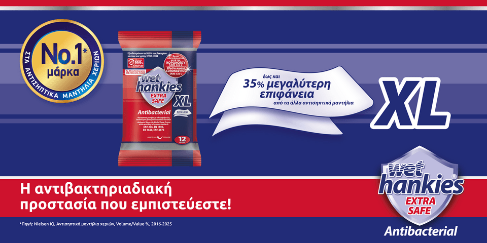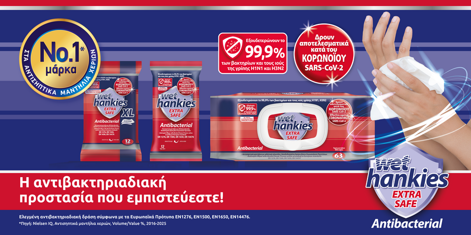 Wet Hankies Antibacterial Extra Safe… η Νο1 αντιβακτηριδιακή προστασία που εμπιστεύεστε!