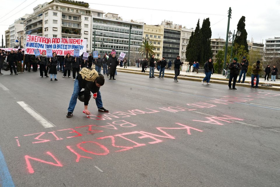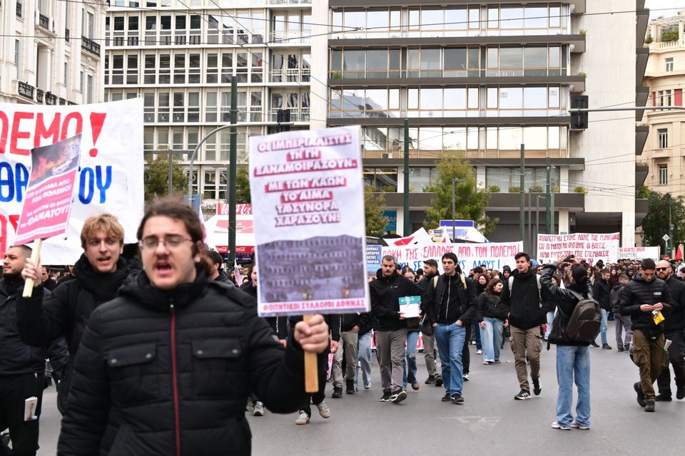 Αντιπολεμικό συλλαλητήριο από φοιτητικούς συλλόγους πραγματοποιήθηκε το μεσημέρι της Πέμπτης στο κέντρο της Αθήνας.