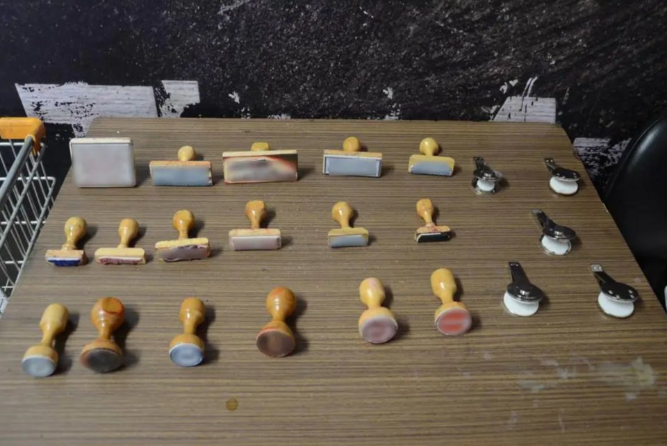 - η 48χρονη, ιδιοκτήτρια καταστήματος κατασκευής σφραγίδων, προμήθευε την οργάνωση με τις πλαστές σφραγίδες.