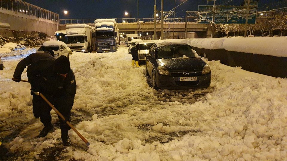 Ενδεικτικές είναι οι εικόνες από το χάος με τους χιλιάδες εγκλωβισμένους στην Αττική Οδό και τις προσπάθειες του Στρατού να βοηθήσει τους πολίτες.