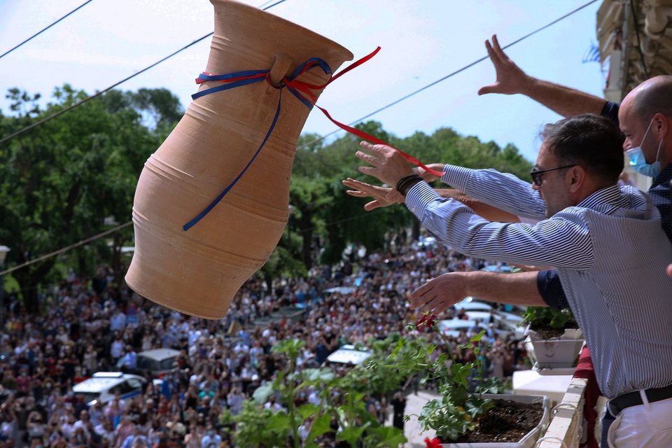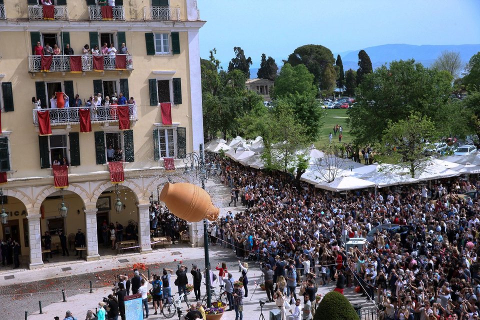 Απίστευτος συνωστισμός δημιουργήθηκε το πρωί του Μεγάλου Σαββάτου στο κέντρο της Παλαιάς Πόλης της Κέρκυρας για το χαρακτηριστικό έθιμο του νησιού, με το σπάσιμο των «μπότηδων».