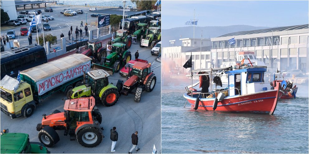 Θεσσαλοί αγρότες και κτηνοτρόφοι απέκλεισαν το λιμάνι του Βόλου από τη στεριά, με τους ψαράδες της Μαγνησίας ως κίνηση συμπαράστασης να το αποκλείουν θαλάσσια.