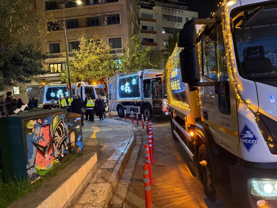 Όσοι τα συναντούν μιλούν για μια εικόνα που δεν είχαν ξαναδεί. Τα βαριά οχήματα της καθαριότητας, συνδεδεμένα μέχρι σήμερα αποκλειστικά με την καθημερινή δουλειά, αποκτούν ξαφνικά έναν διαφορετικό ρόλο και γίνονται φορείς γιορτινής διάθεσης.