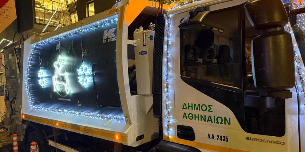 Φωτογραφίες από τα στολισμένα απορριμματοφόρα της Αθήνας