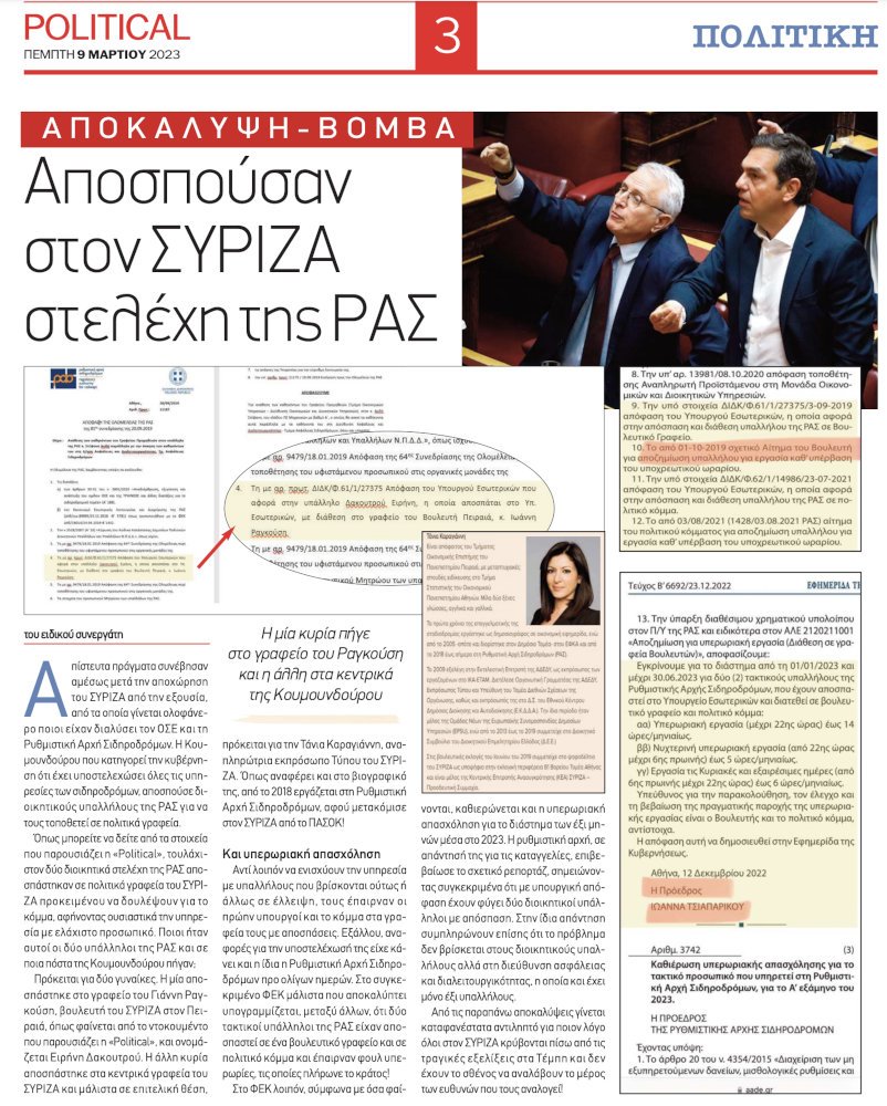 Το δημοσίευμα της Political για τις αποσπάσεις από τη ΡΑΣ στον ΣΥΡΙΖΑ