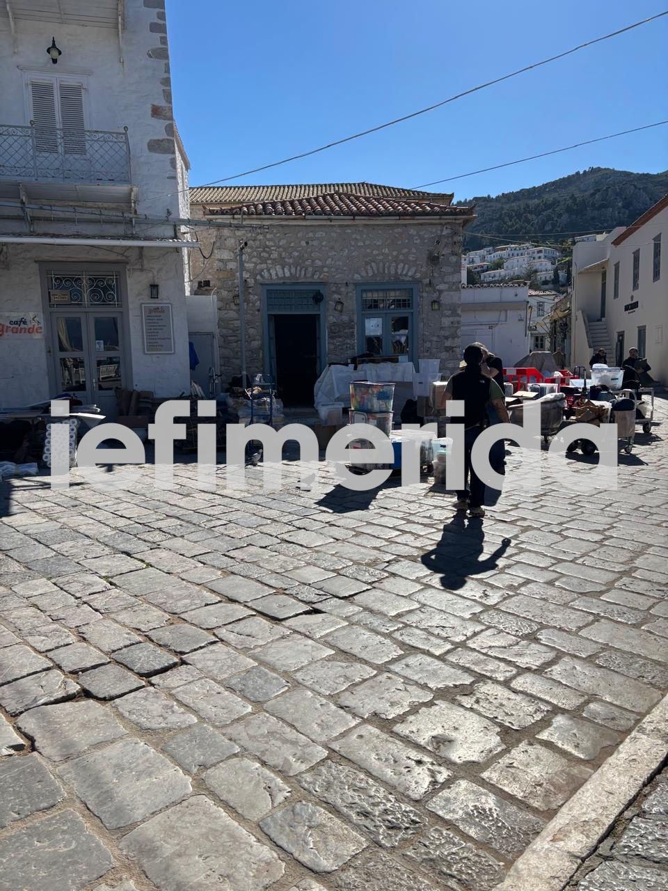 Κάθε γωνιά της Ύδρας έχει γεμίσει με κουτιά, πακέτα, σκηνικά, φέρι μποτ ξεφορτώνουν εξοπλισμό και όλοι βρίσκονται σε μια πρωτόγνωρη αλλά υπέροχη αναμονή.