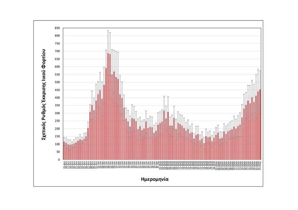 Όπως φαίνεται στα διαγράμματα που παρουσιάζει το ΑΠΕ-ΜΠΕ οι καθημερινές μετρήσεις της Ομάδας του ΑΠΘ αποτυπώνουν μια αύξηση του ιικού φορτίου στο υψηλότερο επίπεδο των τελευταίων δύο μηνών, η οποία αποδίδεται στην επικράτηση της παραλλαγής ΒΑ.2 του στελέχους Όμικρον του SARS-CoV-2.