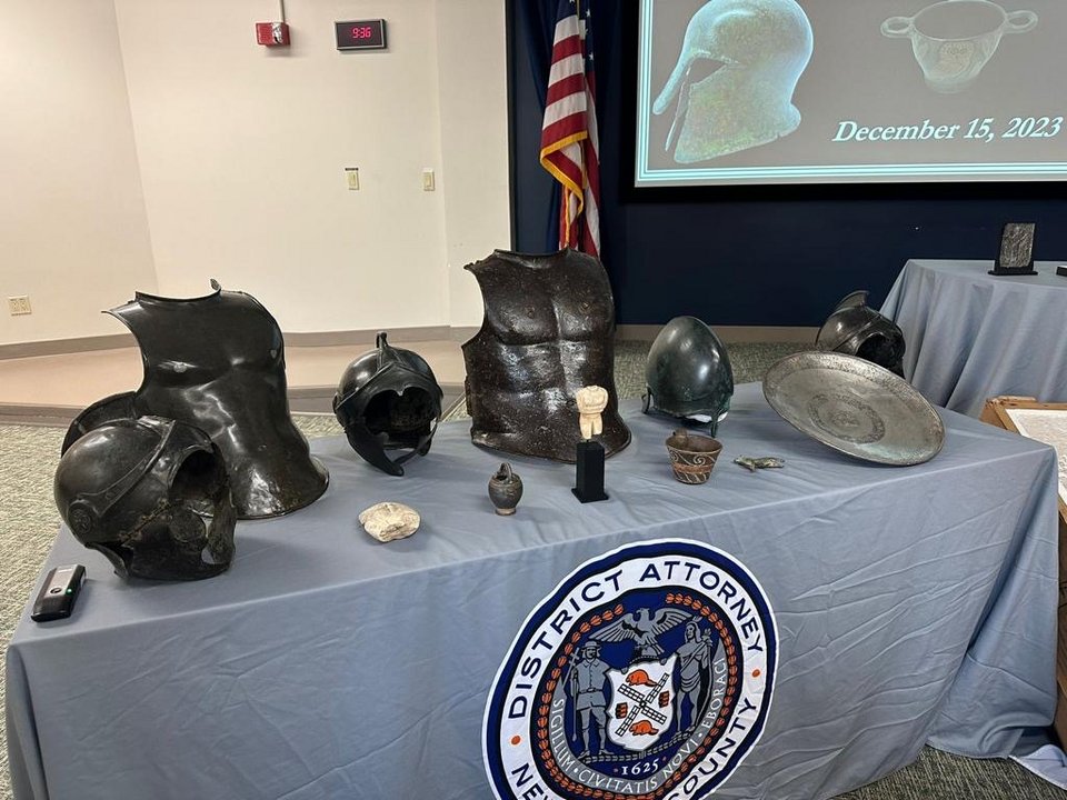 Τα αντικείμενα προέρχονται από κατασχέσεις σε αποθήκες του βρετανού αρχαιοπώλη Robin Symes και στην γκαλερί του Michael Ward στην Νέα Υόρκη.