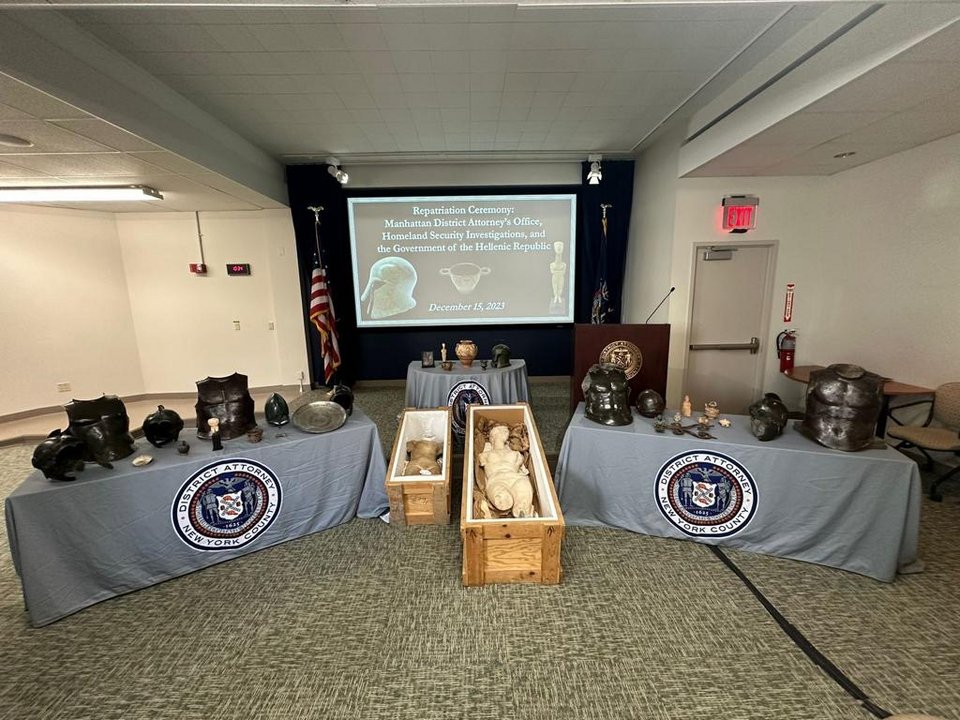 Τριάντα αρχαιότητες επιστρέφουν στην Ελλάδα μετά την κατάσχεσή τους από την Εισαγγελία του Μανχάταν.