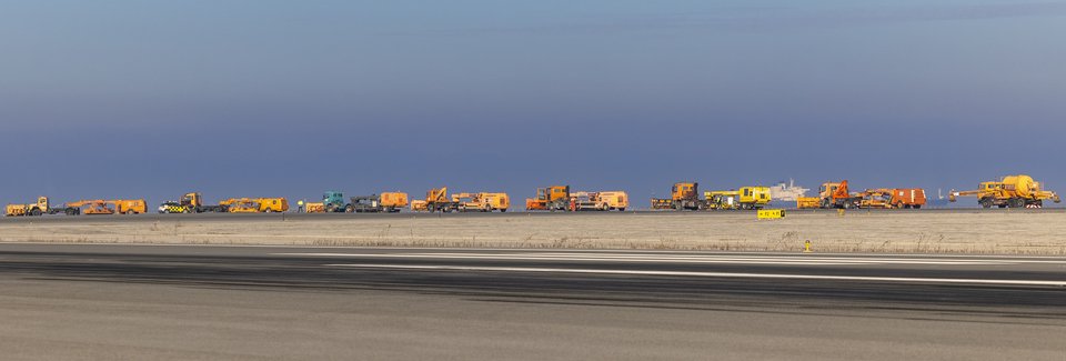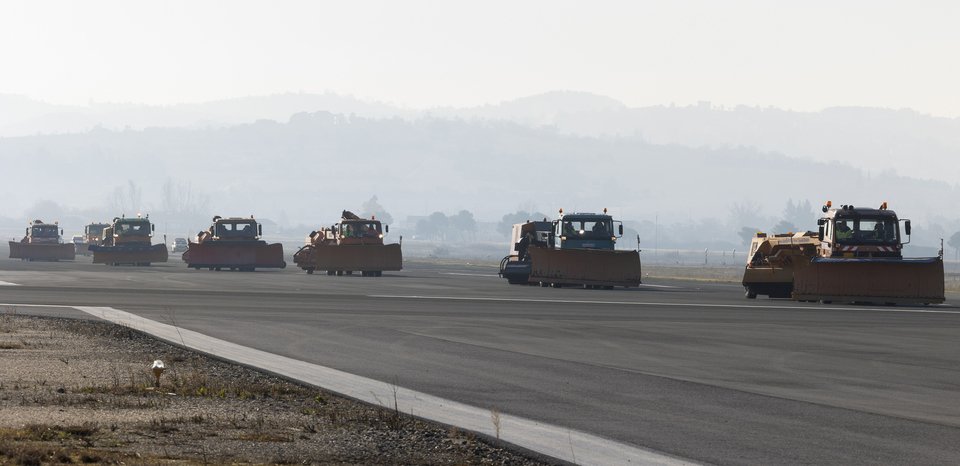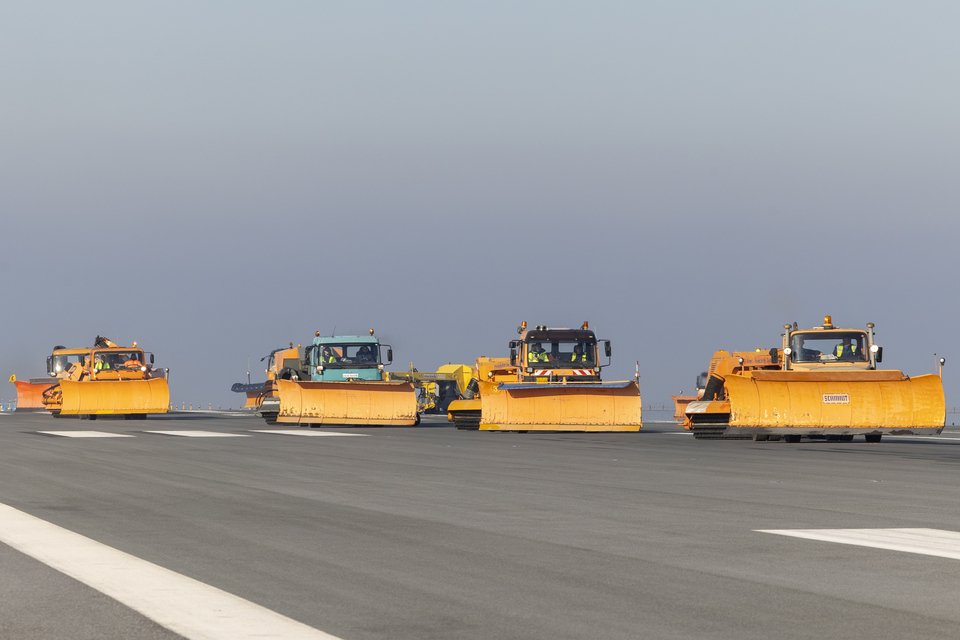 Άνθρωποι και οχήματα κινητοποιούνται αμέσως για τον αποχιονισμό, ώστε η λειτουργία του αεροδρομίου να συνεχιστεί σε περίπτωση που χιονίσει. Η προσπάθεια στέφεται με επιτυχία.