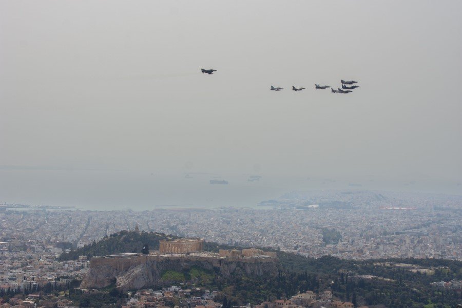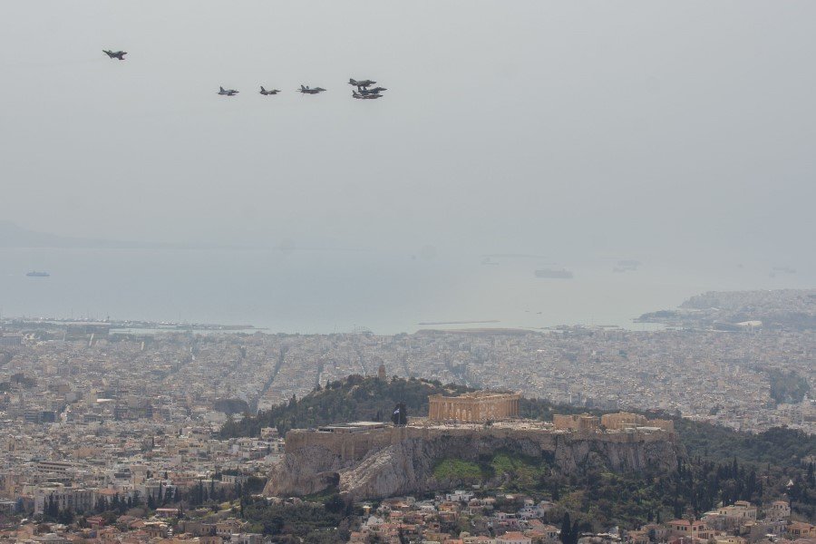 Μαχητικά αεροσκάφη πέταξαν το μεσημέρι της Τρίτης 5/4 πάνω από την Ακρόπολη, στο πλαίσιο της άσκησης «Ηνίοχος 2022».