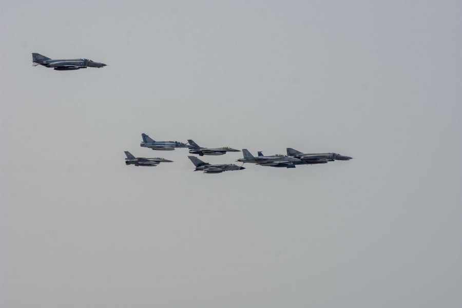 Στον Σχηματισμό των 8 αεροσκαφών συμμετείχαν 2 F-4, 2 F-16 και 1 Mirage 2000-5 από την Ελλάδα, 1 F-18 και 1 F-15 από τις ΗΠΑ και 1 TORNADO από την Ιταλία.