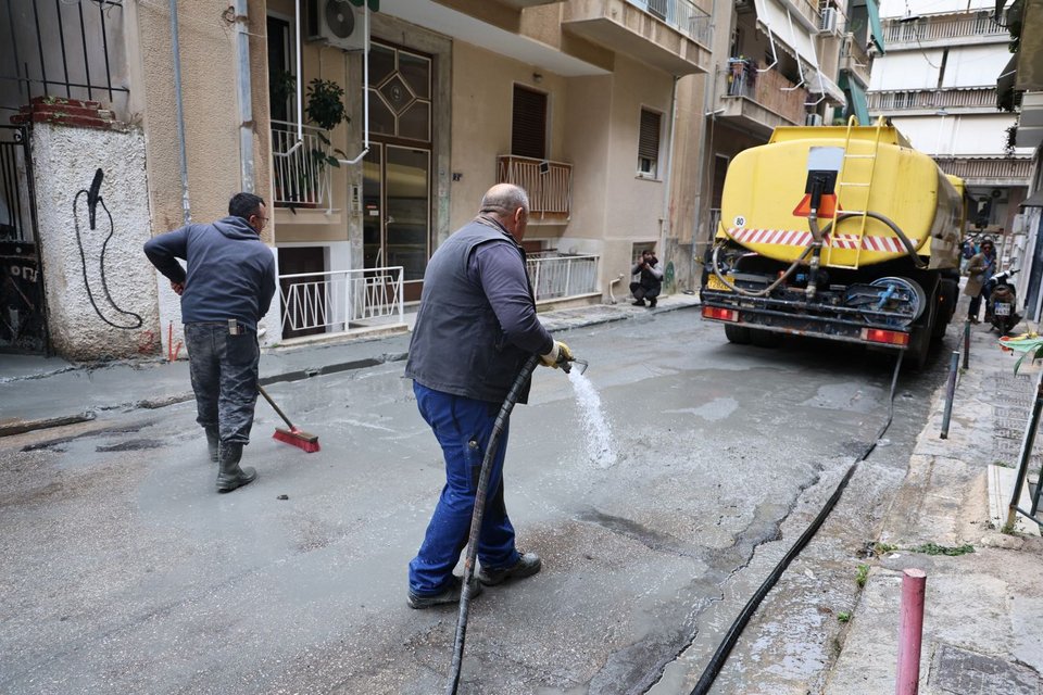 Το γκρι υγρό, που μοιάζει με τσιμέντο, άρχισε να αναβλύζει από την αυλή και να ρέει σε δρόμους γειτονιάς της Κυψέλης με αποτέλεσμα να κλείσουν δρόμοι. Όπως αποδείχθηκε, δεν επρόκειτο για τσιμέντο, αλλά για αθηναϊκό σχιστόλιθο, ο οποίος είναι ακίνδυνος.