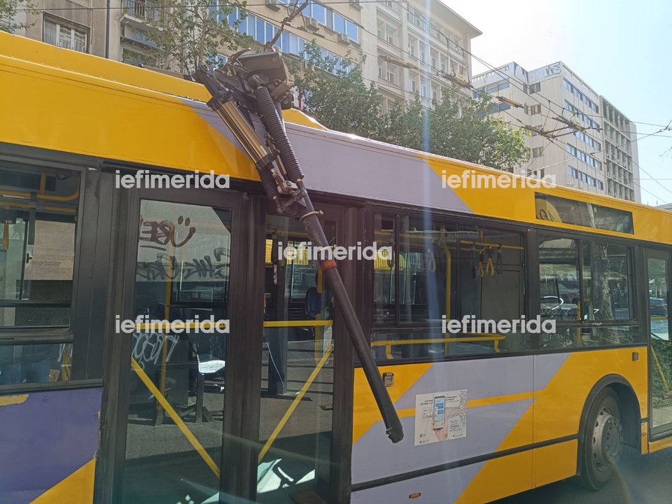Σύμφωνα με τις πρώτες πληροφορίες, το συμβάν προκλήθηκε επί της οδού Πανεπιστημίου, όταν στο διώροφο τουριστικό λεωφορείο έπεσε βραχίονας τροφοδοσίας τρόλεϊ που αποκολλήθηκε από διερχόμενο τρόλεϊ.