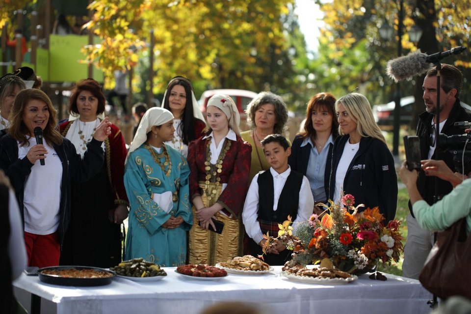 Αργυρώ Μπαρμπαρίγου μαζί με τον τοπικό σύλλογο Μικρασιατών,