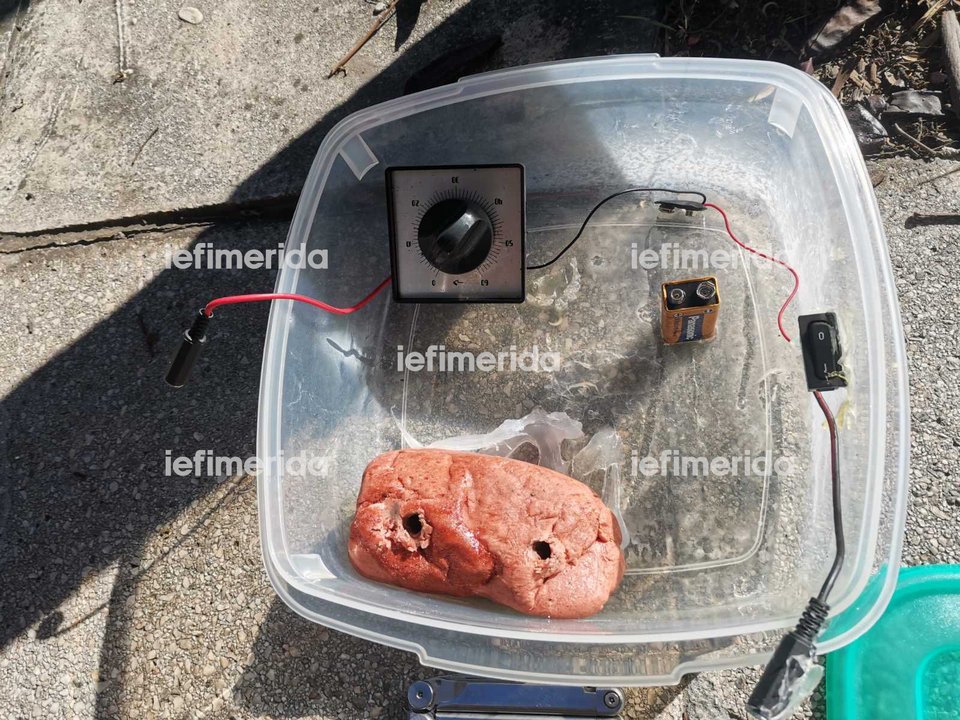 Σύμφωνα με πληροφορίες, μέσα στα δύο τάπερ στη σακούλα σκουπιδιών υπήρχε εκρηκτική ύλη, ζελατοδυναμίτιδα, μαζί με τη συνδεσμολογία, ρολόι και πυροκροτητή.