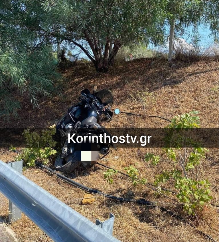Στη φωτογραφία του Korinthostv.gr, φαίνονται τα δύο άτομα που διέπραξαν το αδίκημα πάνω στη μηχανή μεγάλου κυβισμού, την οποία εγκατέλειψαν μετά το περιστατικό, καθώς και τα ρούχα που φορούσαν την ώρα της ληστείας.
