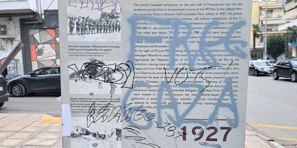Τη στήλη μνήμης του εβραϊκού συνοικισμού «Κάμπελ» στην Καλαμαριά Θεσσαλονίκης βανδάλισαν άγνωστοι.