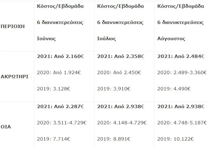 Σύμφωνα με τα αρχικά στοιχεία που προκύπτουν από ιστοσελίδες φιλοξενίας ακινήτων που διατίθενται μέσω βραχυχρόνιας μίσθωσης ή/και με σήμα του Ε.Ο.Τ και αφορούν αποκλειστικά βίλες με ιδιωτική πισίνα (σε Μύκονο και Σαντορίνη) ή με κοινόχρηστη πισίνα (στην υπόλοιπη Ελλάδα), τα δεδομένα είναι πολύ ενθαρρυντικά όσο αφορά στις πληρότητες που καταγράφονται για το καλοκαίρι του 2021.