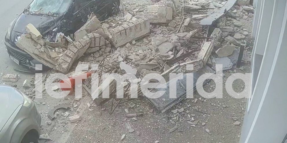Λαύριο: Η στιγμή της κατάρρευσης μπαλκονιού