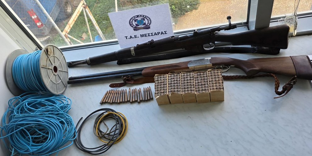 Ακόμη, οι αρχές κατάσχεσαν ένα πολεμικό τυφέκιο, ένα δίκαννο κυνηγετικό όπλο, 181 πλήρη φυσίγγια πολεμικού τυφεκίου, έξι φυτίλια συνολικού μήκους περίπου 65 μέτρων.