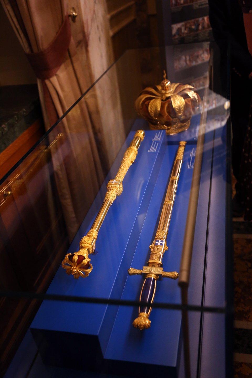 Στην επιβλητική αίθουσα Τροπαίων «Ελευθέριος Βενιζέλος» της Βουλής των Ελλήνων θα φιλοξενούνται από σήμερα και για τα επόμενα σαράντα εννέα χρόνια, δηλαδή μέχρι το 2073, «τα Βασιλικά Εμβλήματα του Όθωνα, στέμμα-σκήπτρο-ξίφος».