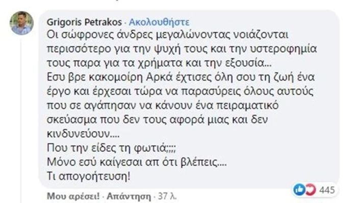 Ο τραγουδιστής κατηγόρησε τον Αρκά ότι… παρασύρει τον κόσμο να εμβολιαστεί με «πειραματικά σκευάσματα» ενώ δεν δίστασε να του επιτεθεί με χαρακτηρισμούς όπως «κακομοίρη» και «τι απογοήτευση».
