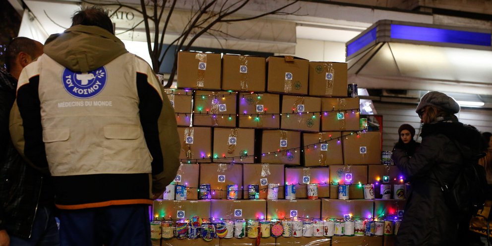 Το δέντρο των Γιατρών του Κόσμου από κουτιά γάλα