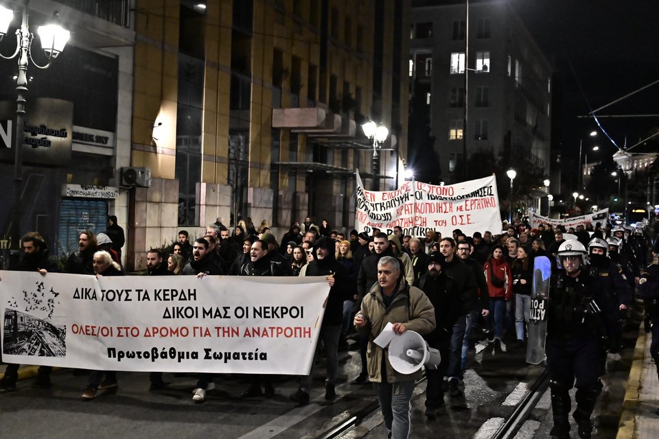 Διαμαρτυρία έξω από τα γραφεία της Hellenic Train βρίσκεται σε εξέλιξη.