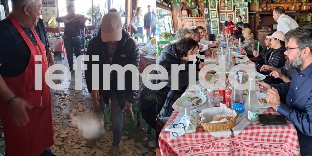 Σε γνωστή ψαροταβέρνα του νησιού έκαναν γλέντι γεμάτο νησιωτική Ελλάδα, ξεχνώντας για λίγο τα ήθη και τα έθιμα του τόπου τους.