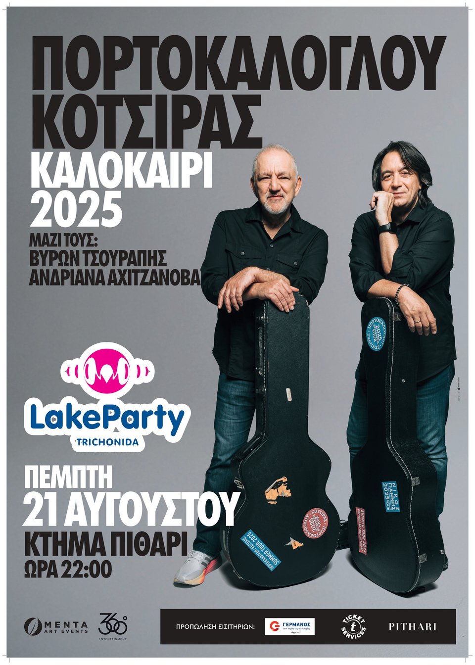 Την Πέμπτη 21 Αυγούστου ο Νίκος Πορτοκάλογλου, o σπουδαίος τραγουδοποιός με πλούσιο συνθετικό έργο, και ο Γιάννης Κότσιρας, ένας από τους κορυφαίους ερμηνευτές της γενιάς του, ενώνουν τις δυνάμεις τους για να δημιουργήσουν μια μοναδική μουσική εμπειρία, γεμάτη συναίσθημα, ενέργεια και αυθεντικότητα στη σκηνή του Lake Party.