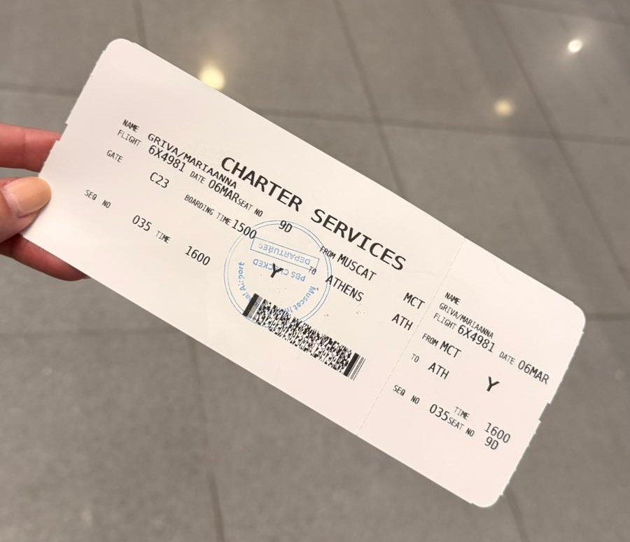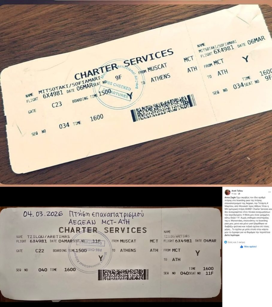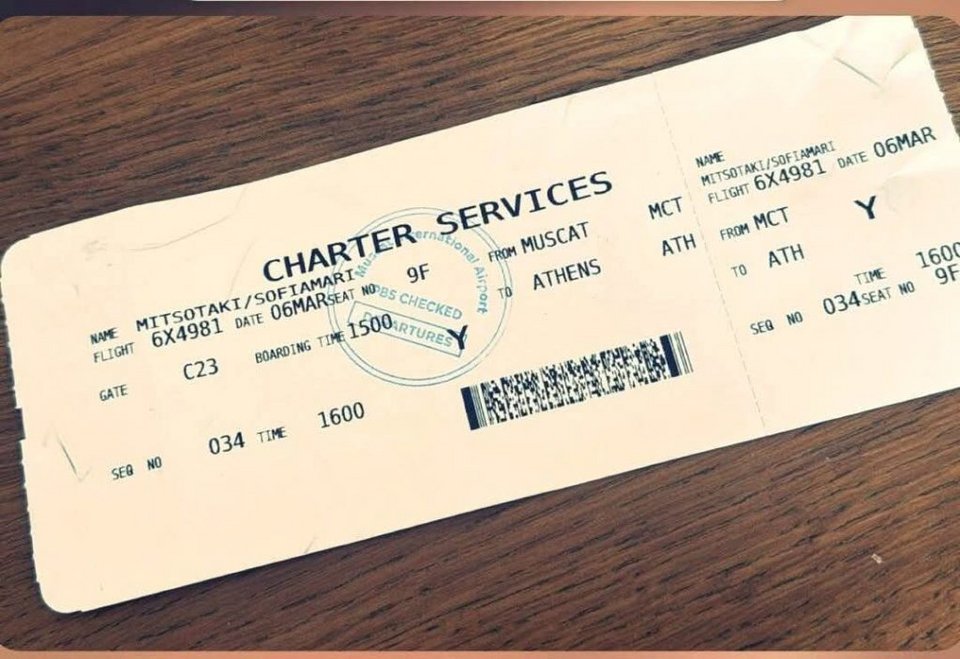 “Παρόλο που δεν επιθυμούσα να δώσω συνέχεια σε αυτή τη δυσάρεστη ιστορία, προχωρώ στη δημοσιοποίηση του εισιτηρίου μου από την προγραμματισμένη πτήση charter της Aegean από το αεροδρόμιο του Μουσκάτ στις 6 Μαρτίου”.