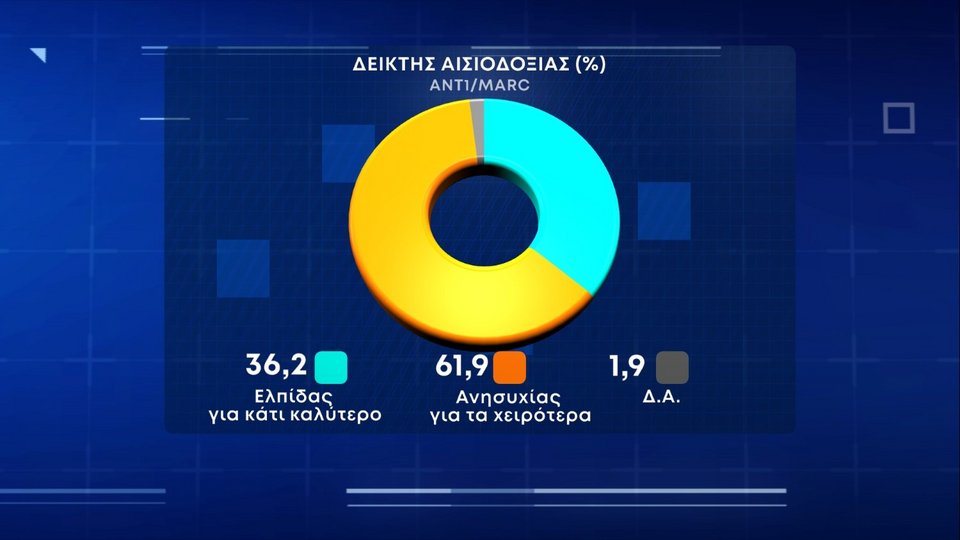 Τέλος, σχετικά με τον δείκτη αισιοδοξίας, το 61,9% ανησυχεί για τα χειρότερα, την ώρα που το 36,2% ελπίζει σε κάτι καλύτερο.