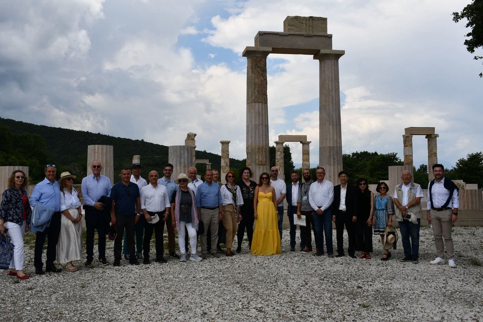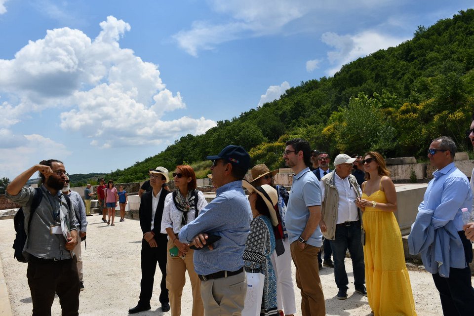 Στην είσοδο του Μουσείου, τους εκπροσώπους της διπλωματικής κοινότητας της Θεσσαλονίκης, υποδέχθηκε η προϊσταμένη της Εφορείας Αρχαιοτήτων Ημαθίας Γεωργία Στρατούλη, ενώ την ξενάγησή τους στον χώρο ανέλαβε ο αρχαιολόγος - ξεναγός Τάσος Κακαμανούδης.