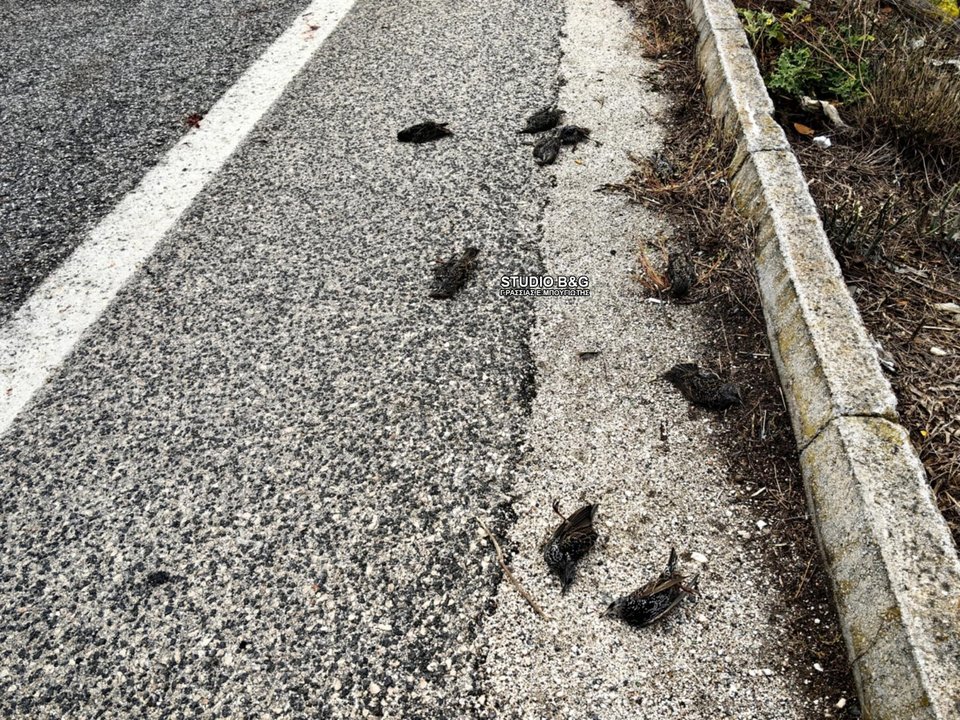 Αποτροπιασμό προκαλούν εικόνες από δρόμο στην Αργολίδα, όπου το μεσημέρι της Πέμπτης εντοπίστηκαν εκατοντάδες νεκρά πουλιά.
