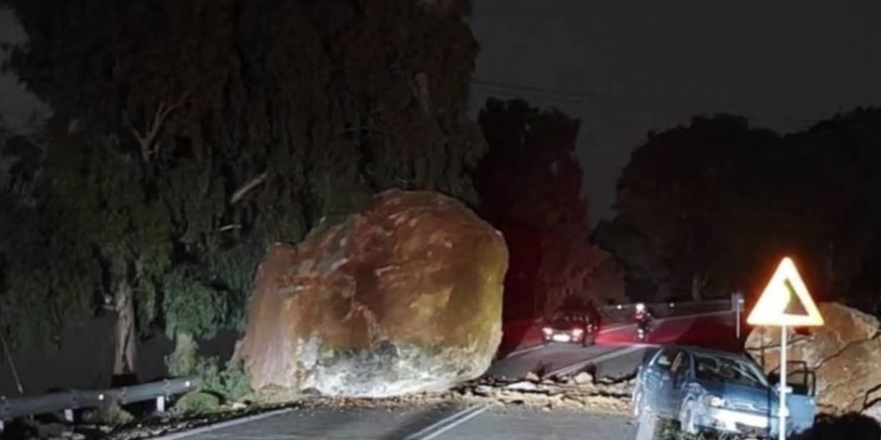 Χίος -Γιγάντιος βράχος στο οδόστρωμα