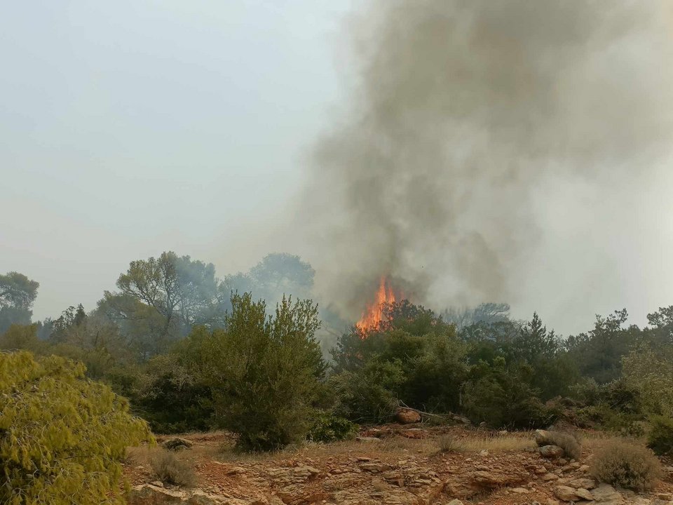 Στη Σαρωνίδα η φωτιά είναι σε ύφεση.