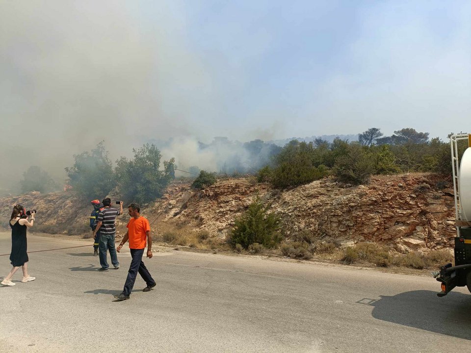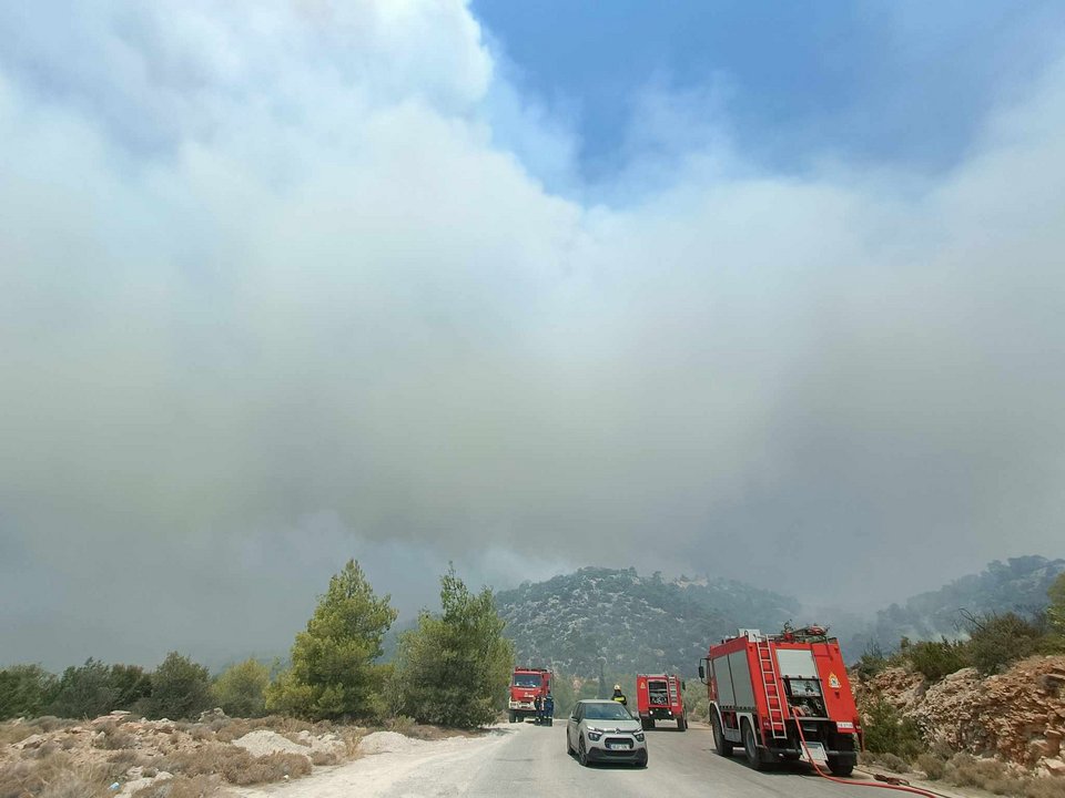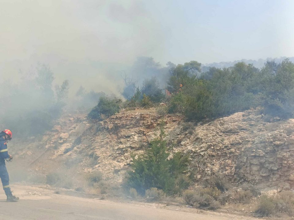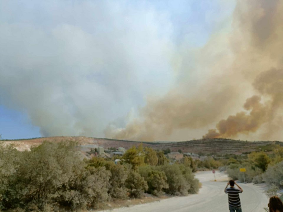 Δείτε το βίντεο από την ευρύτερη περιοχή του λατομείου, με τη μάχη να επικεντρώνεται στο να αποτραπεί η εξέλιξη της φωτιάς προς την περιοχή Πουρνάρι: