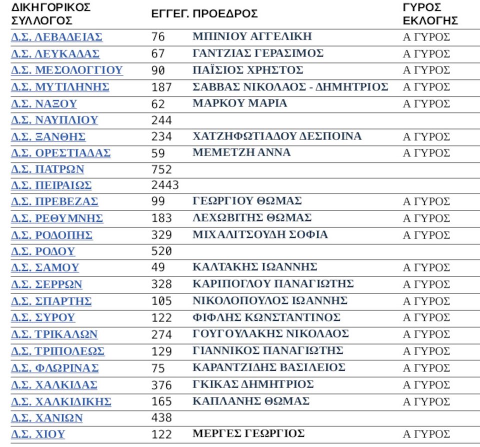 Ο χάρτης των εκλογών των Δικηγορικών Συλλόγων