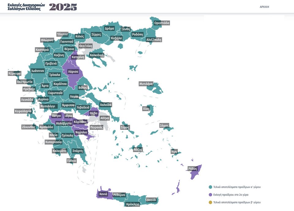 Ο χάρτης αποτελεσμάτων των εκλογών των Δικηγορικών Συλλόγων -Πού εξελέγησαν πρόεδρος και ΔΣ