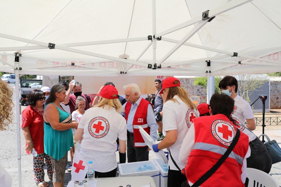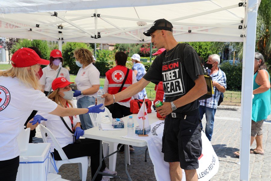 Την Παρασκευή (22/7), ο Ελληνικός Ερυθρός Σταυρός, κινητοποίησε το επαγγελματικό και εθελοντικό δυναμικό του, προκειμένου να παράσχει υποστήριξη και ανακούφιση σε αστέγους, πολίτες και τουρίστες, λόγω των ιδιαίτερων υψηλών θερμοκρασιών που επικρατούν αυτές τις μέρες στην Αθήνα. Η δράση αναπτύχθηκε στο Θησείο και την Πλατεία Συντάγματος, παρουσία του Προέδρου του Ε.Ε.Σ, Dr. Αντώνιου Αυγερινού και του Γενικού Γραμματέα Κοινωνικής Αλληλεγγύης και καταπολέμησης της Φτώχειας, κ. Γιώργου Σταμάτη.