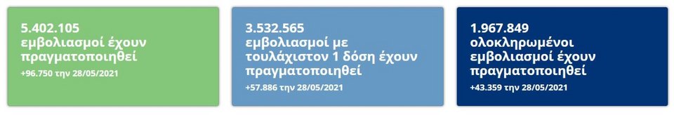 - Με 1η δόση: 3.532.565 εμβολιασμοί